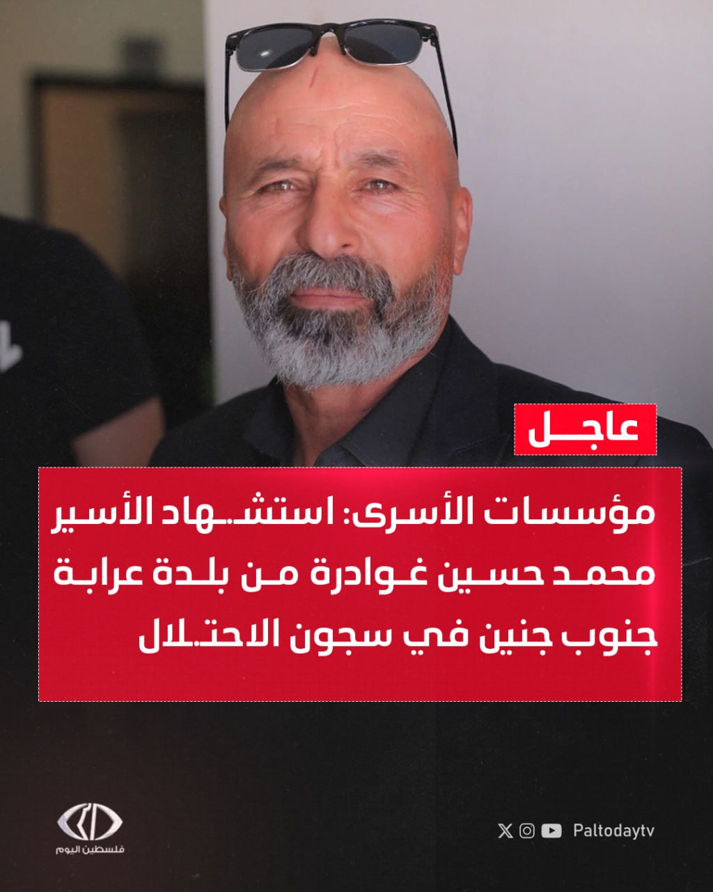 عاجل | هيئة شؤون الأسرى ونادي الأسير: استشـ.ـهاد الأسير محمد حسين غوادرة "63 عاما" من بلدة عرابة جنوب جنين في سجون الاحتـ.ـلال #قناة_فلسطين