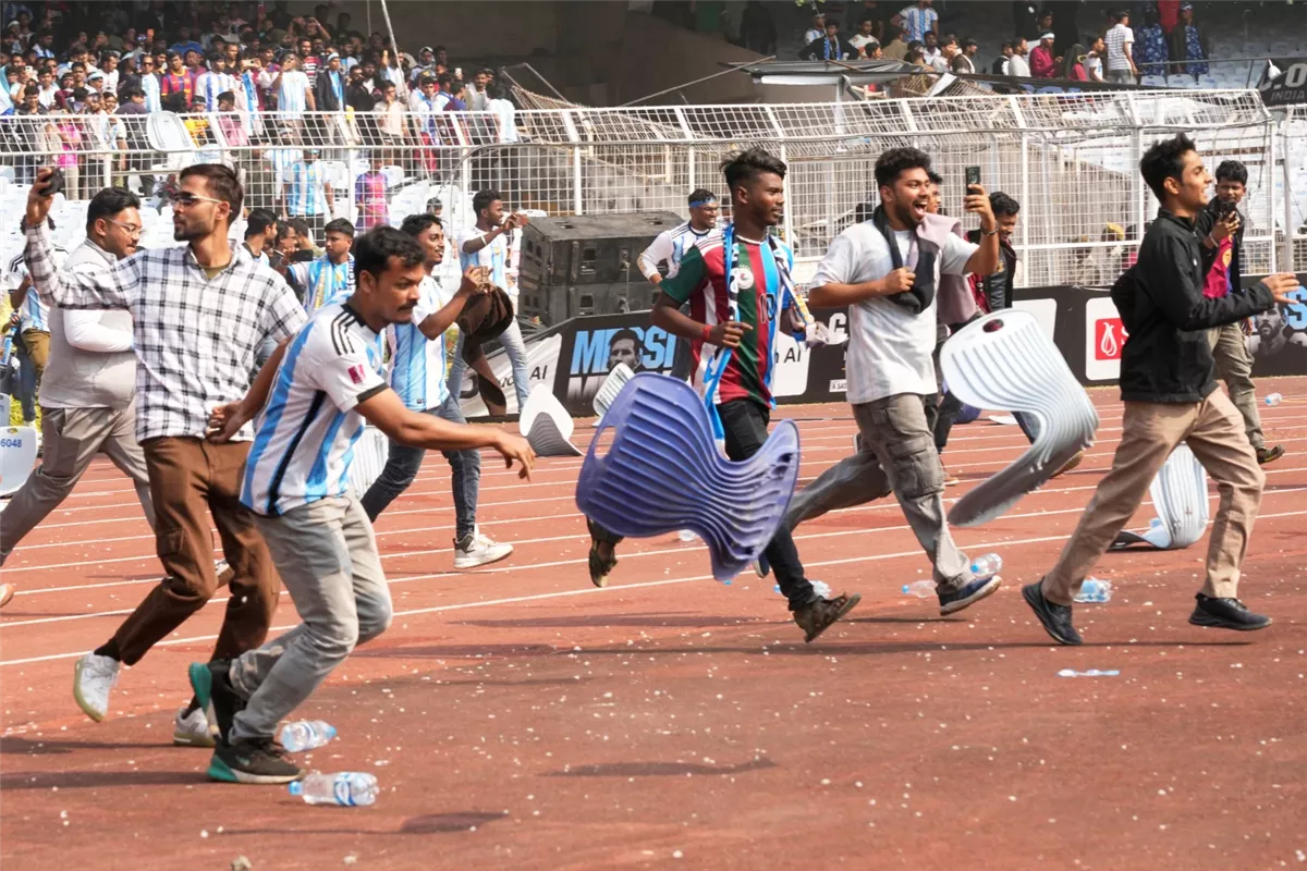 تصاعدت أحداث الفوضى خلال زيارة ليونيل ميسي للهند بعد اقتحام الجماهير أرض ملعب سالت ليك في كلكتا وإلقاء المقاعد والزجاجات احتجاجا على سوء التنظيم وقصر مدة ظهور النجم الأرجنتيني أمام المشجعين الذين دفعوا مبالغ طائلة لمتابعته عن قرب.