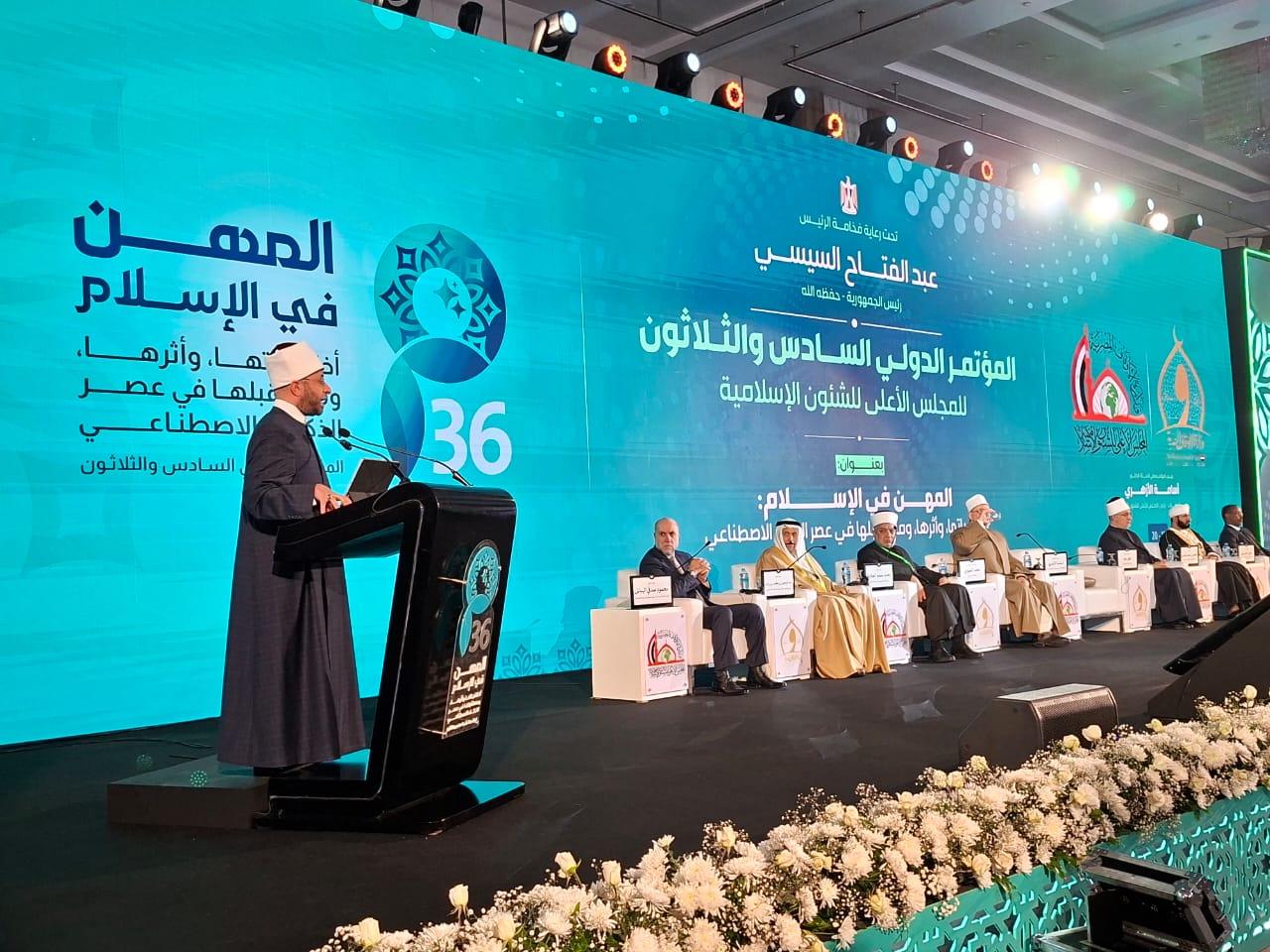 افتتح الدكتور أسامة الأزهري وزير الأوقاف، فعاليات المؤتمر الدولي السادس والثلاثين للمجلس الأعلى للشئون الإسلامية برعاية كريمة من السيد الرئيس عبد الفتاح السيسي، وبإنابة كريمة عن الدكتور المهندس مصطفى مدبولي رئيس مجلس الوزراء، والذي يُعقد في الفترة من 19 حتى 20 من يناير بالقاهرة، بعنوان: "المهن في الإسلام: أخلاقياتها وأثرها، ومستقبلها في عصر الذكاء الاصطناعي".