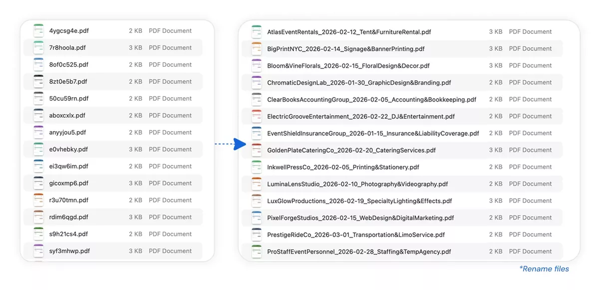 كذلك يستطيع التطبيق إعادة تسمية مئات الملفات وفق صيغة موحدة خلال دقائق، وهو ما كان يستغرق ساعات من العمل اليدوي في السابق.